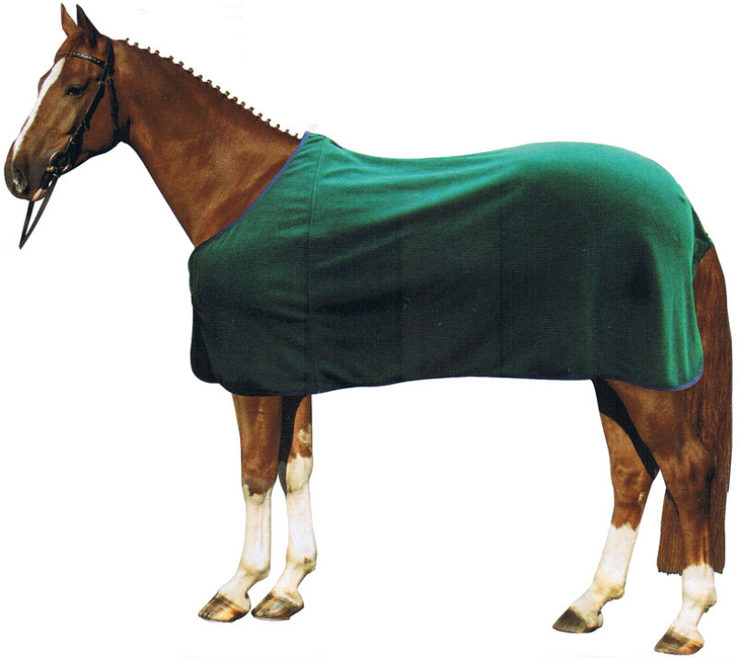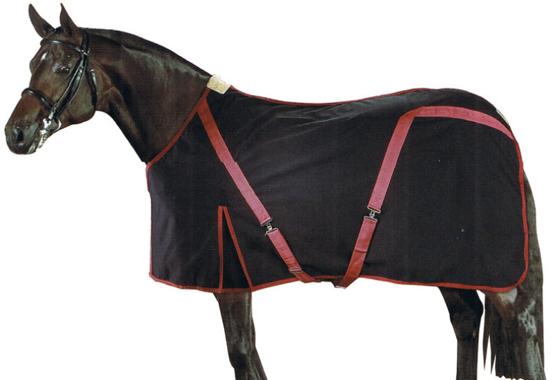 Polyesternetz - Fliegendecke mit anatomisch geformten Fleeceeinsatz für einen verbesserten Abschwitzeffekt, mit Gehfalte, Widerristpolster, Brustschnalle und Schweifschnüre.