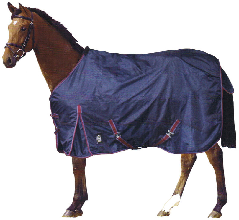 Nylon und ohne Rückennaht gefertigt. Die Decke ist mit zwei Brustschnallen, Kreuzgurten und Widerristpolster bestückt. Das Fleecefutter und die