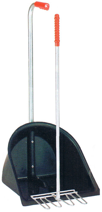 Ihr idealer Partner im Stall, Anhänger und auf der Boxengasse. Stabile Sammelschaufe aus Kunststoff und handliche Ballenforke aus Metall.